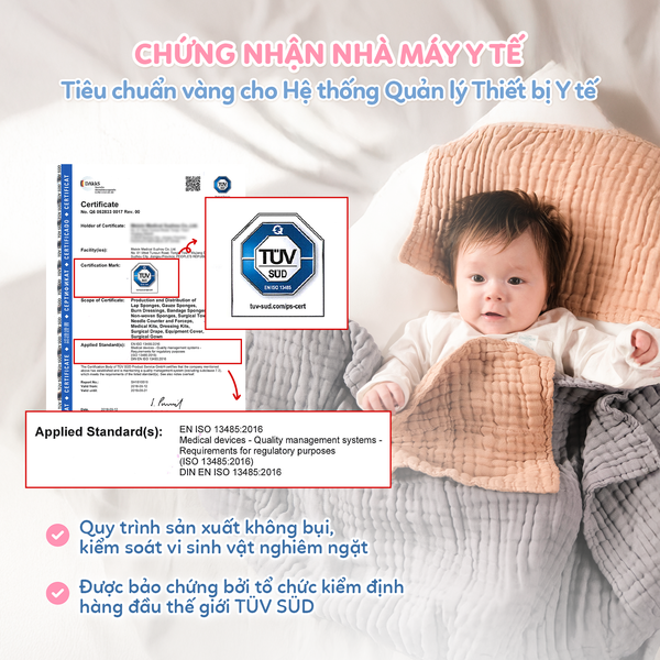 TẠI SAO KHĂN BÔNG CHO TRẺ SƠ SINH CẦN ĐẠT CHUẨN Y TẾ FDA VÀ ISO 13485?
