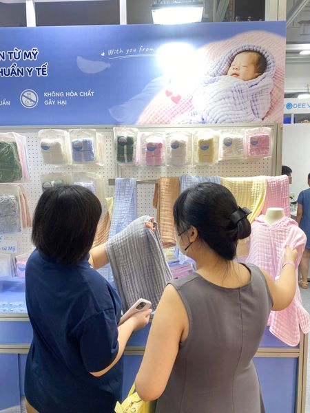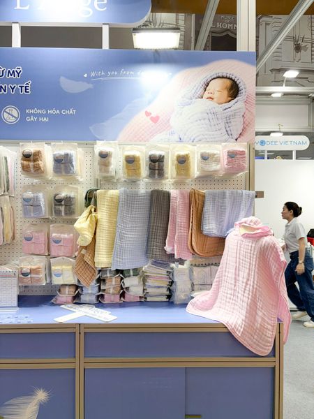 Ngay từ những ngày đầu, gian hàng L’Ange đã thu hút sự quan tâm của nhiều gia đình. Không gian trưng bày được sắp đặt tinh tế, để mỗi chiếc khăn bông đều có thể “kể” câu chuyện riêng của mình - câu chuyện về sự mềm mại, an toàn và những giá trị bền vững mà thương hiệu gửi gắm. Với nhiều ba mẹ, chỉ cần chạm tay vào từng thớ vải là đủ để cảm nhận sự khác biệt.